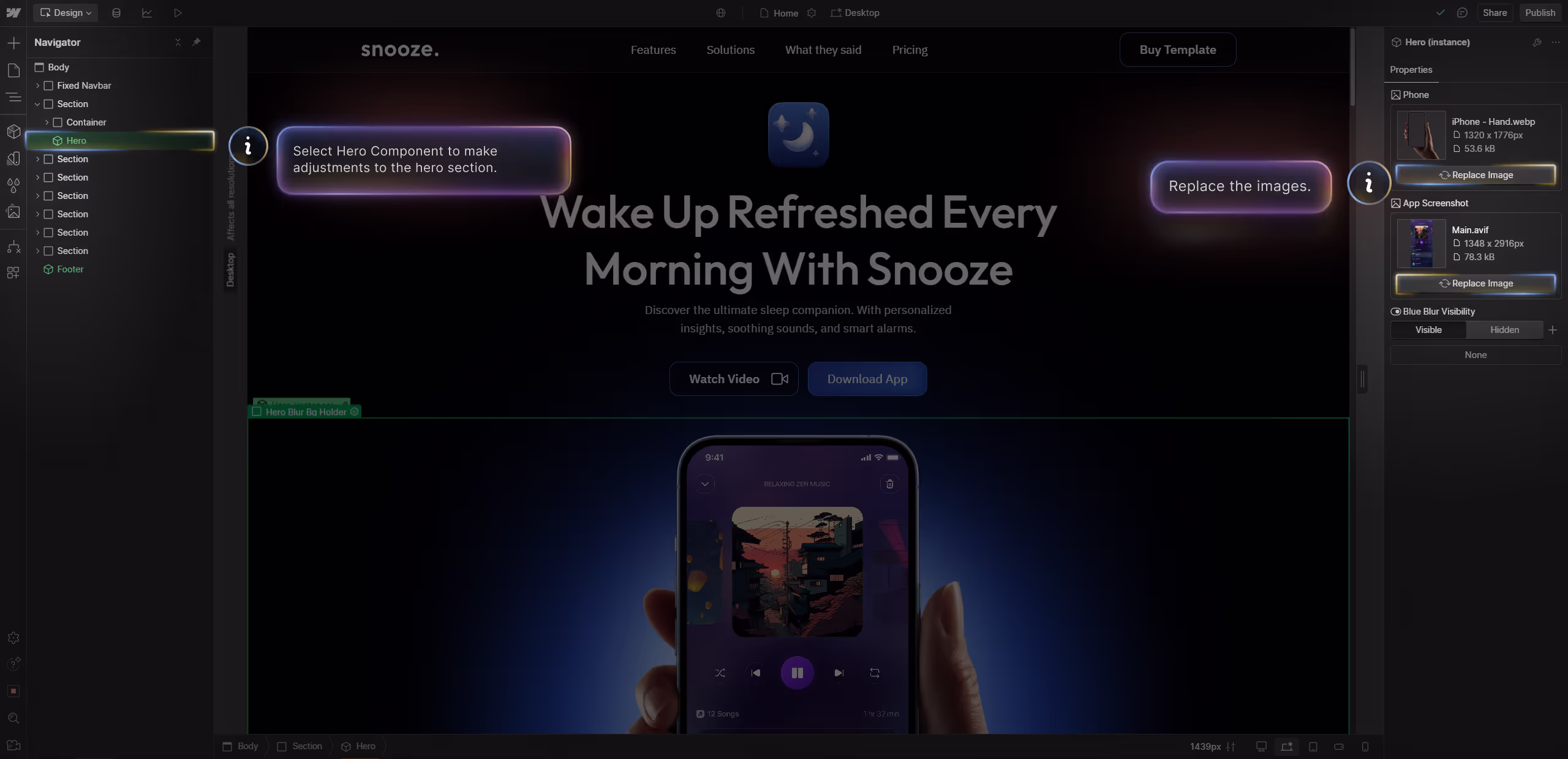 1. Locate "Hero" (1) Component on the navigator